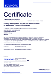 According to the PED our customers may directly download the neccessary declarations of conformity. Please use this free service, because declarations which are manually requested and issued by us must be charged.