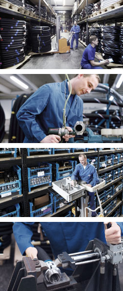 ELAFLEX HIBY Plettenberg fully plays to its strengths. Complex products of aluminium, cast bronze and gunmetal are manufactured using the latest production technology and quality assurance processes. The plant is exemplary for its high level of vertical integration including mechanical processing and assembling in the one-piece-flow system, as well as for its large testing facilities. An efficient work and material flow process completes the performance capabilities.